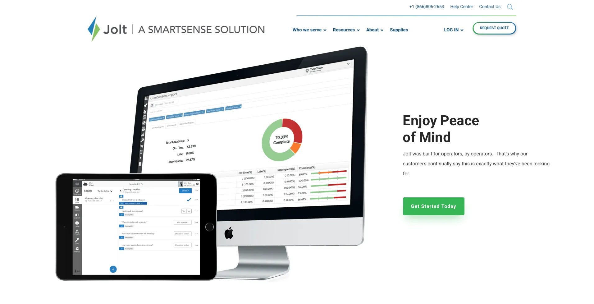 Jolt has carved out a strong position in QSR and restaurant operations. Its food safety compliance tools, including IoT temperature monitoring, HACCP checklists, and inkless label printing, are solid. Major chains like Smoothie King, Jimmy John's, and Buffalo Wild Wings franchisees rely on it for daily store-level execution.