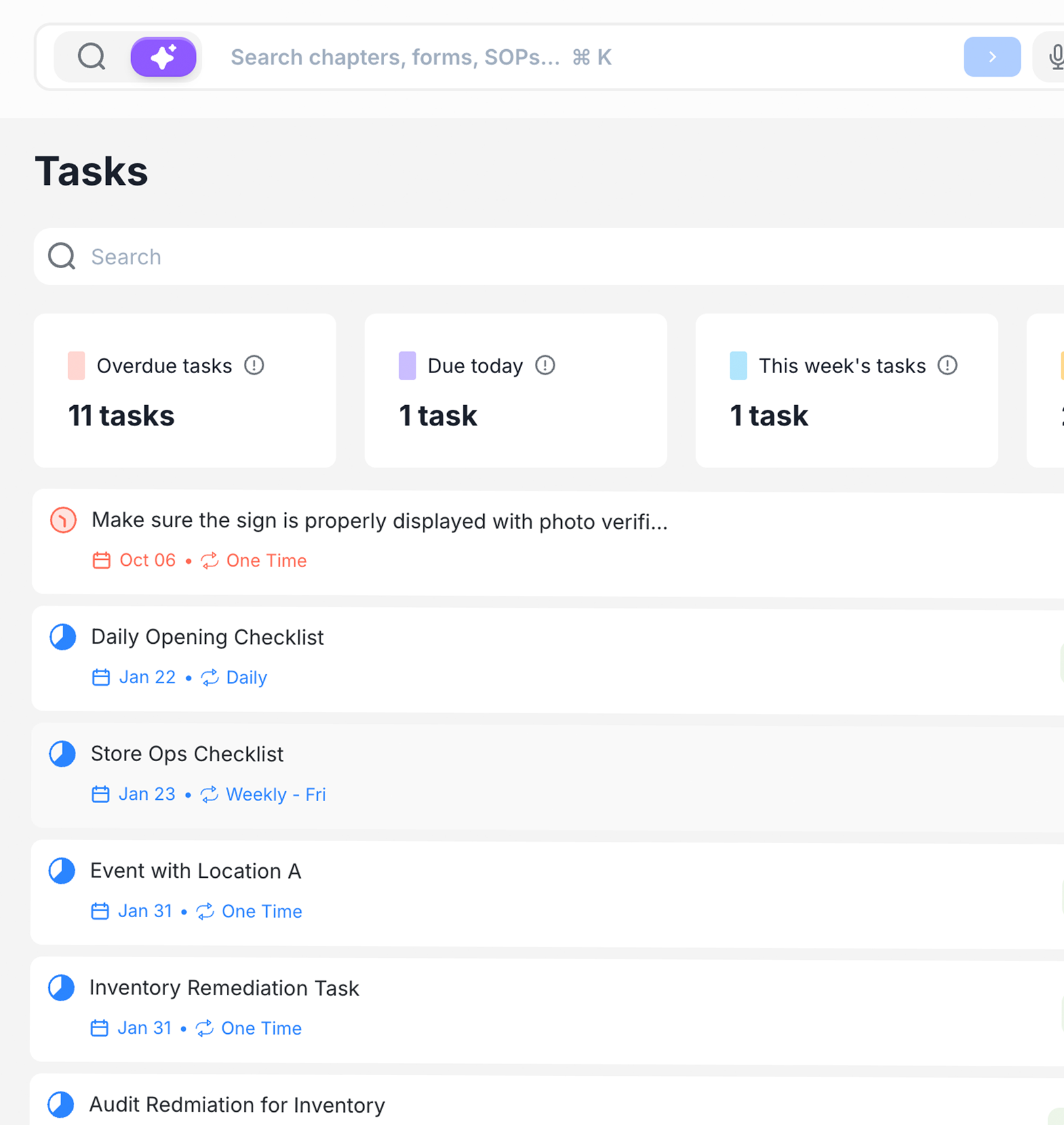 Task Management aligns all your locations to follow the same procedures, keeping your brand's quality consistent. By automating many routine tasks, it cuts down on paperwork and saves time. The system also tracks task completion across your franchise, giving you useful data you can use to spot trends and make your business more efficient over time.